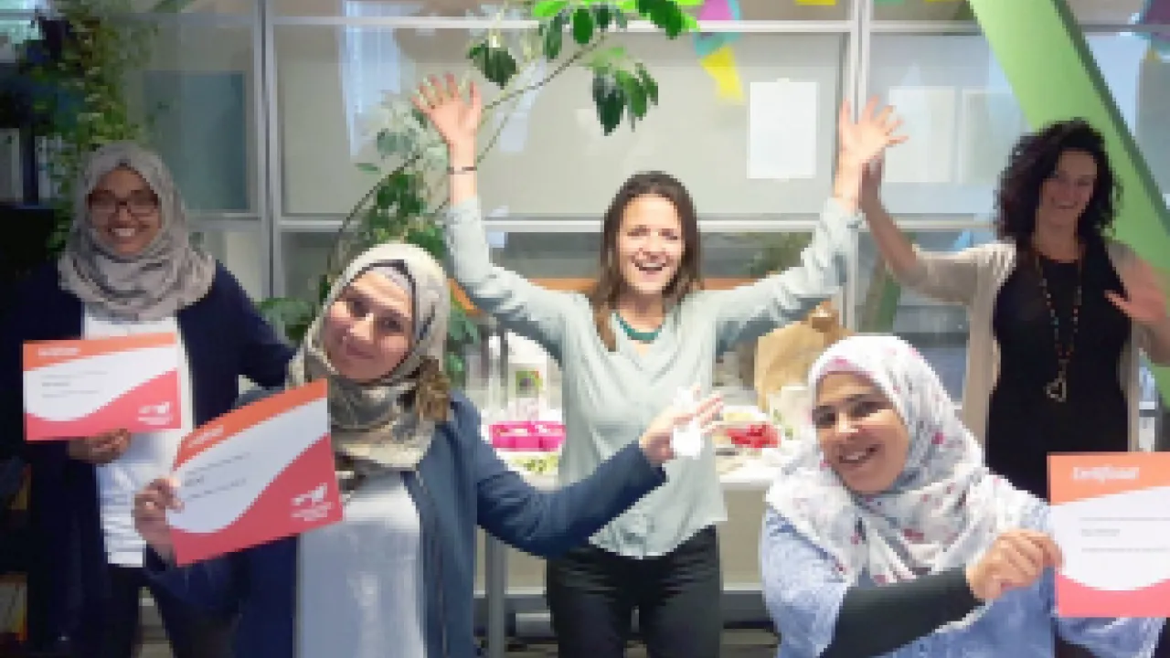 Door alles wat zij meemaken, lopen vluchtelingen een verhoogd risico op psychische problemen die hun participatie aan de samenleving kan belemmeren. De training MindFit biedt deelnemers handvatten om met stress, trauma en onzekerheden om te gaan en hun eigen kracht te hervinden. Geheel corona-proof ontvingen Hala, Salam en Wafaa (Syrië) en Manal (Jemen) na afronding van de training in Utrecht een certificaat van VluchtelingenWerk Plan Einstein. Het werd gevierd met een quiz, zelfgemaakte traktaties en de hartelijke felicitaties van de trainers.