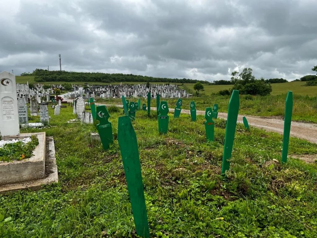 Het is stil op de islamitische begraafplaats Humci in Bihác. Honderden goedverzorgde graven staan in uniforme rijen op licht glooiende heuvels. Dan doemt er aan de rand van het kerkhof een hoopje kriskras geplaatste, eenvoudige groene paaltjes op. Op de erop geschroefde naamplaatjes staat af en toe een naam of een geboortedatum. Vaker staat er in het Arabisch 'identiteit onbekend'. Dit zijn de anonieme graven van jonge mensen die stierven tijdens hun vlucht. Overleden door geweld, uitputting of verdronken tijdens het oversteken van rivieren.