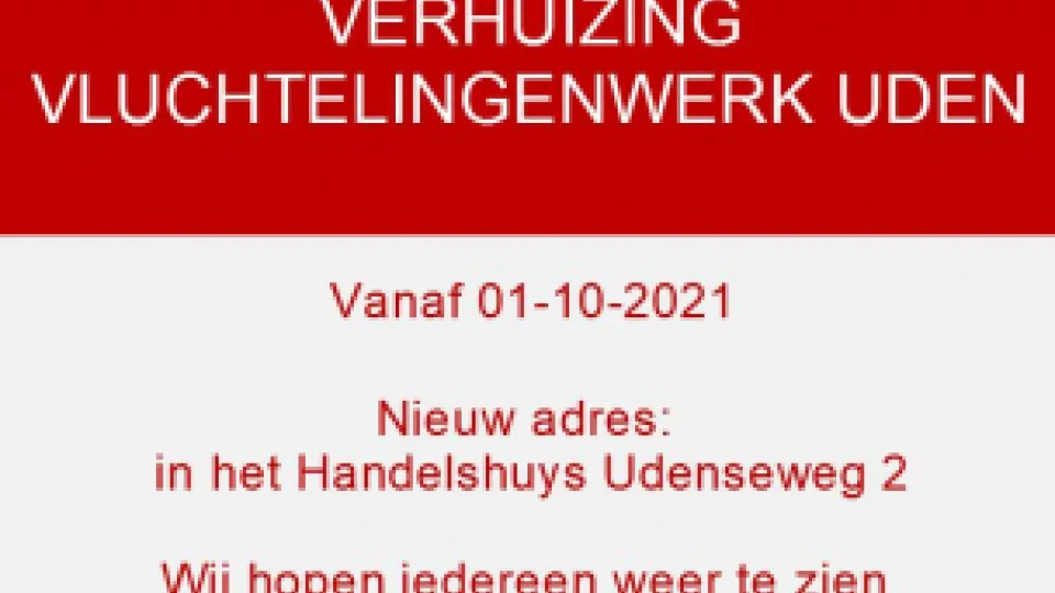 VluchtelingenWerk locatie Vught gaat per 1-04-2019 verhuizen naar Industrieweg 9c 5262 GJ Vught.