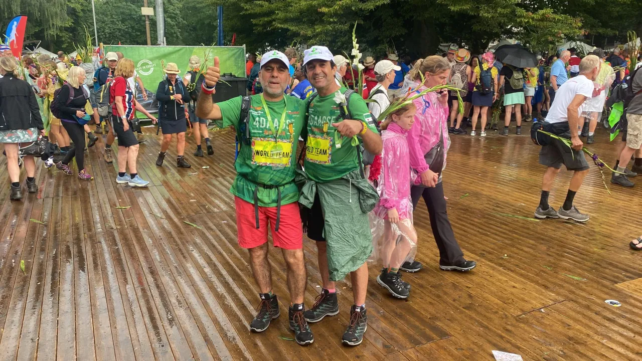 Toen de Syrische Amal en haar man Haffas hoorden over het World Team van de Nijmeegse Vierdaagse, meldden ze zich meteen aan. Het team van in totaal 24 wandelaars, met elf verschillende nationaliteiten, haalde maar liefst 8.866 euro op voor VluchtelingenWerk. ‘Mensen reageerden zo mooi op ons verhaal.’