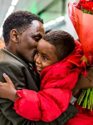 'Het weerzien met mijn gezin was in één woord fantastisch. Abel, mijn zoontje van zes jaar, vloog op me af. Toch moest mijn dochter Kokob wel even aan me wennen. Ze was anderhalf jaar toen ik haar voor het laatst zag, nu was ze vier. Op Schiphol was ze stil en teruggetrokken.'