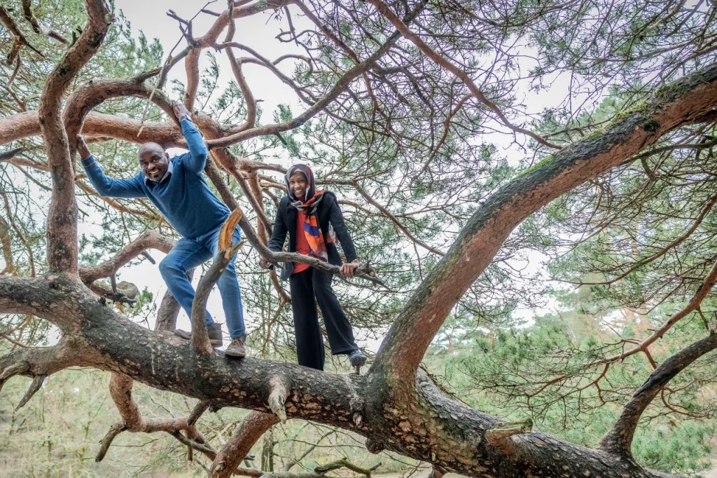 Ranya: ‘En ook nu blijven we de rust op zoeken van het bos. Dat doen we meestal op zondag. Dan laten we alle zorgen van ons afglijden. De kinderen zijn inmiddels groot, maar klimmen nog steeds met plezier in de bomen. En wij trouwens ook!’