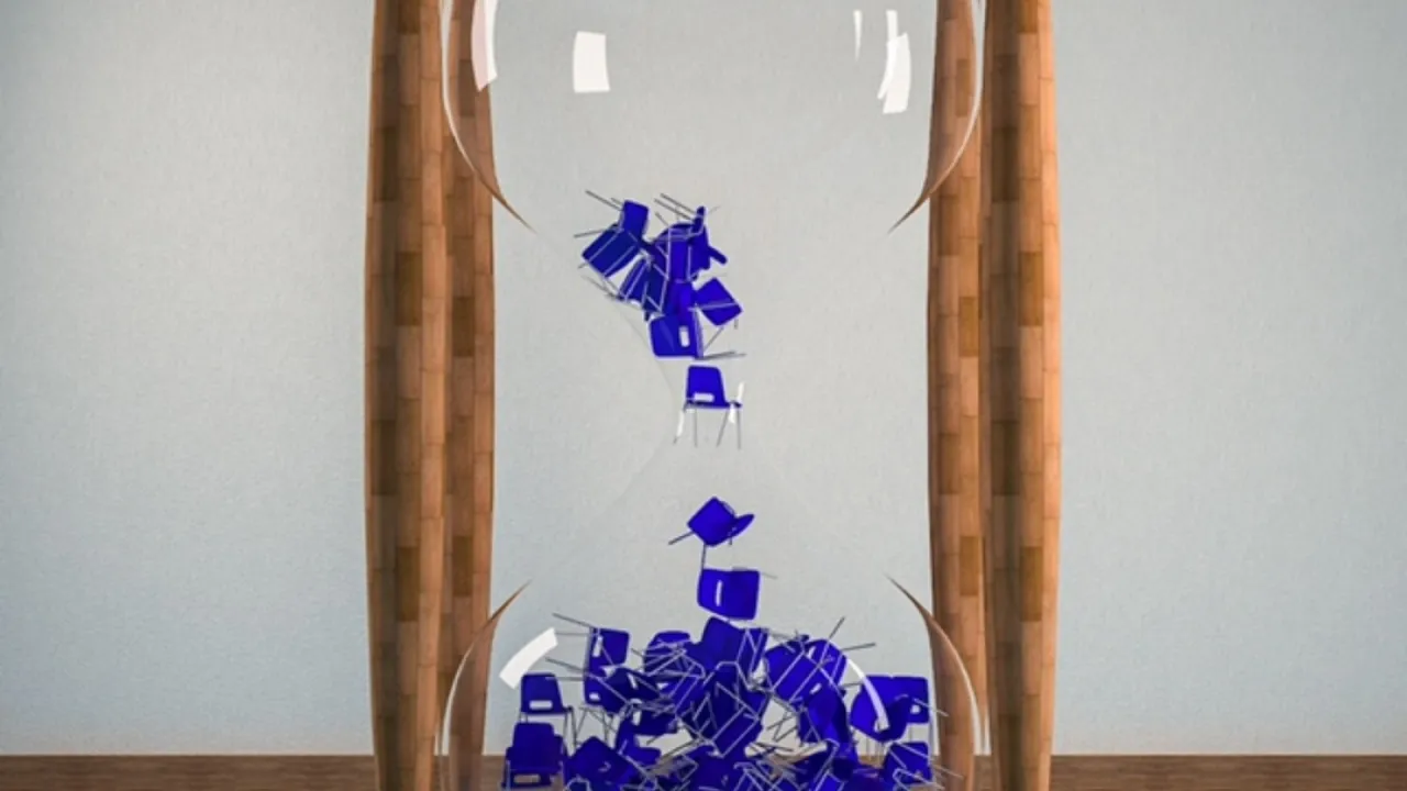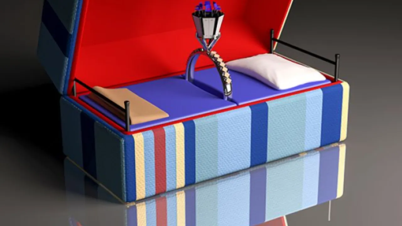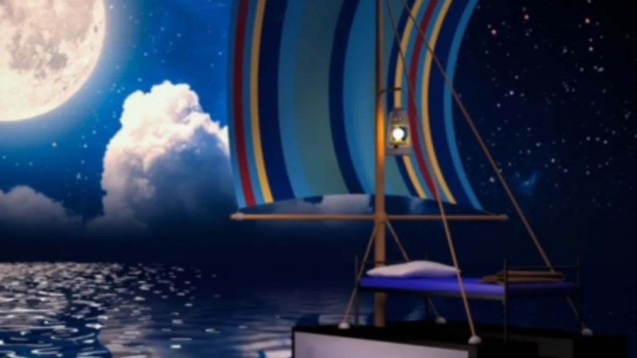 Die monotone leefomgeving werd de inspiratie voor zijn kunst, een combinatie van fotografie en 3-D modellen waarin het typerende azc-meubilair steeds terugkeert en een dieper verhaal vertelt. 'Neem het bootje op zee,' legt hij uit. 'Een op het oog gemoedelijk, romantisch tafereeltje zo badend in het maanlicht, maar niets is minder waar. Er is geen enkele controle: het bootje (de zeilen zijn de azc-gordijnen, red.) is stuurloos en overgeleverd aan de elementen op zee.'