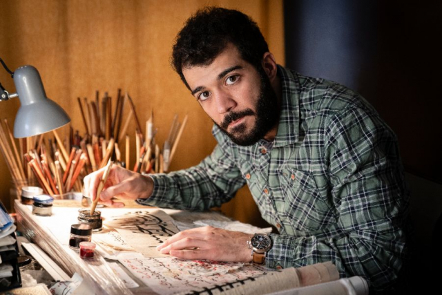 'Kalligrafie zit in mijn genen, in mijn cellen. Er gaat bijna geen dag voorbij dat ik niet aan het schrijven ben. Als mijn handen niet het papier beroeren, dan dansen de letters wel rond in mijn gedachten. Tijdens het kalligraferen ervaar ik een rust die ook na het schrijven nog lang bij me blijft. Het schrijven van vijf of zes woorden duurt dan ook zo’n vijftien dagen, een vers uit de Koran: een maand. Door mijn kunst leerde ik geduldig te zijn, een eigenschap die ik na mijn vlucht uit Syrië hard nodig gehad heb.'