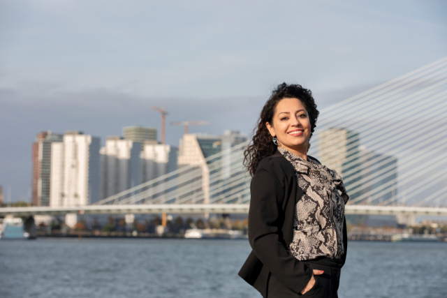 'Ik was een maand in Nederland en wilde niet naar buiten. Alles was ik kwijtgeraakt: mijn carrière, toekomstplannen en het ergste van alles: mijn ouders. Het was alsof mijn fundering onder mij vandaan was geschopt. "Ga toch even naar buiten," spoorde mijn man me aan. En terwijl ik door onbekende straten liep, besloot ik dat ik deze stad moest leren kennen als ik hier zou blijven. Die dag begon mijn liefde voor Rotterdam.'