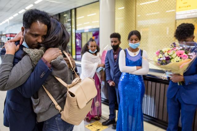 Afgelopen april kwam Embabba na d vier jaar eindelijk op Schiphol aan. Haar vader wrijft in zijn ogen de tranen weg: 'Ze was zo groot geworden… maar wel heel dun.' Embabba ziet ernaar uit om volgende week met school te beginnen en Nederlands te gaan leren. Uiteindelijk wil ze graag verpleegster worden. Net als haar oudere broers en zussen heeft ze een bijbaantje in een vishandel in het dorp. 'We wonen goed in Urk,' zegt Tsegab. 'Het is rustig, en de meeste mensen zijn net als wij christelijk en hebben grote gezinnen.' Moeder Fekadu: 'Ik ben zo blij dat Embabba er weer is. Ik heb er gewoon geen woorden voor. Eindelijk zijn we weer compleet.'