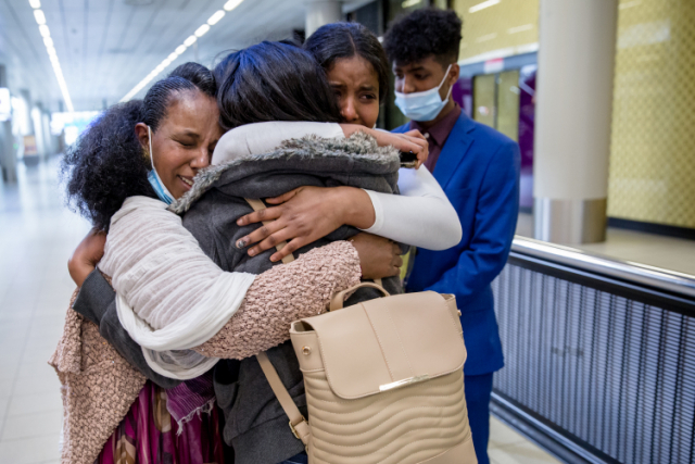 Tot een tante erachter kwam in welke gevangenis Embabba zat. Vrienden van de kerk zamelden de 3000 euro in die de gevangenis vroeg voor Embabba’s vrijlating. En nog eens de 2000 euro die ze smokkelaars moest betalen om nogmaals die gevaarlijke grensovertocht te maken. Uiteindelijk zat Embabba, mede door de pandemie, ruim een jaar vast in een vluchtelingenkamp in Ethiopië. Ook daar waren de omstandigheden niet best, maar, zegt ze: 'Nu had ik tenminste wat om naar uit te kijken.' Ze kwam er een tante tegen en deelden samen een tent. Af en toe kon ze met haar ouders in Nederland bellen.